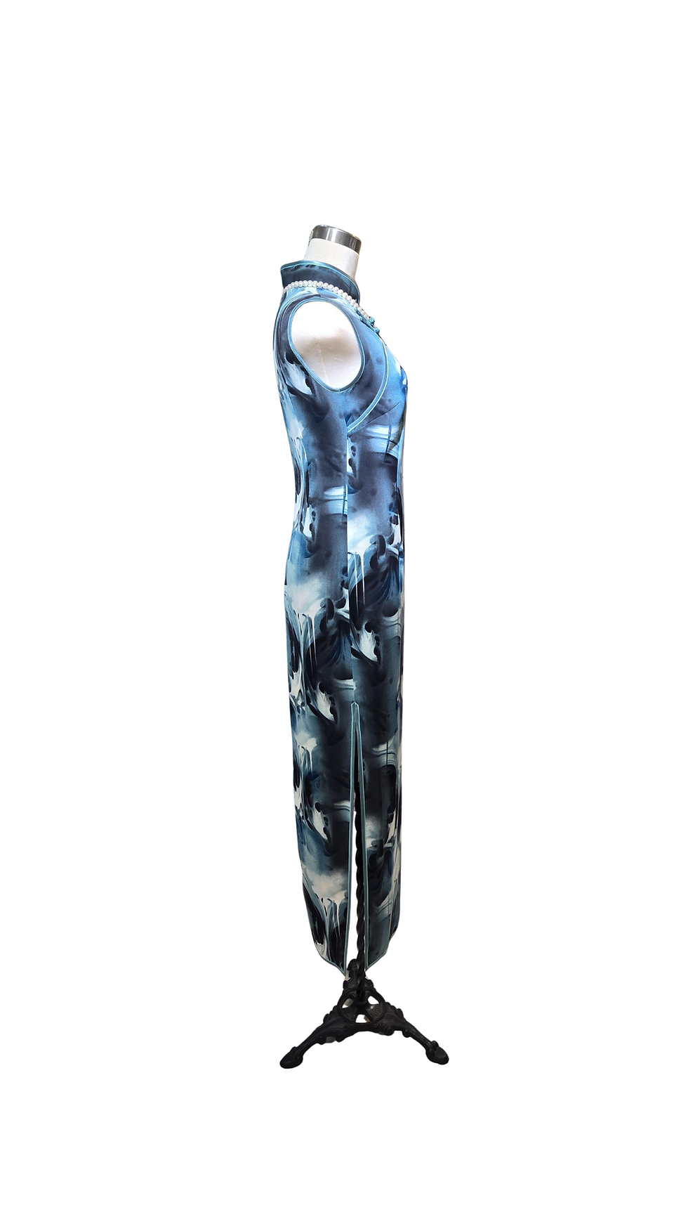 金藍幻影短旗袍 Celestial Mirage short qipao P-004